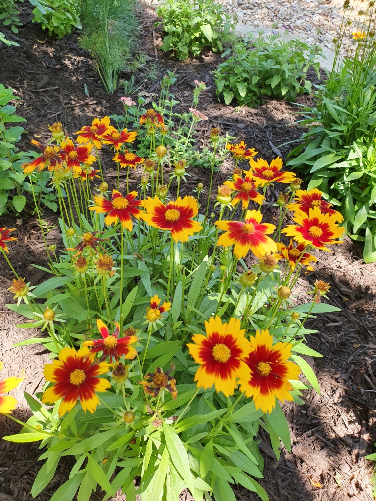 Plains Coreopsis is a perennial wildflower that typically reaches a height of 1 to 3 feet (30 to 90 cm) and forms clumps of slender stems. The fern-like leaves are deeply lobed and alternate along the stem, giving the plant an airy and graceful appearance. The real showstopper, however, is the abundant display of daisy-like flowers with bright yellow petals and deep red or maroon centers. The flowers bloom profusely throughout the summer, attracting bees, butterflies, and other pollinators to the garden.
